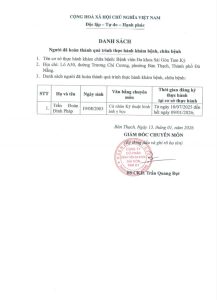 Danh sách người đã hoàn thành quá trình thực hành khám chữa bệnh tại Bệnh viện Đa khoa Sài Gòn Tam Kỳ
